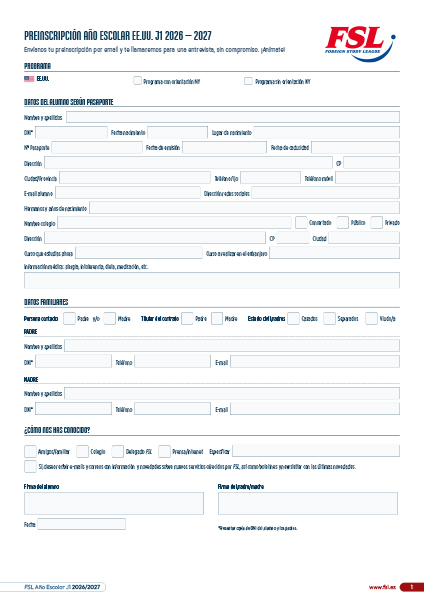 Solicitud de inscripción Año Escolar USA J1 2026/27